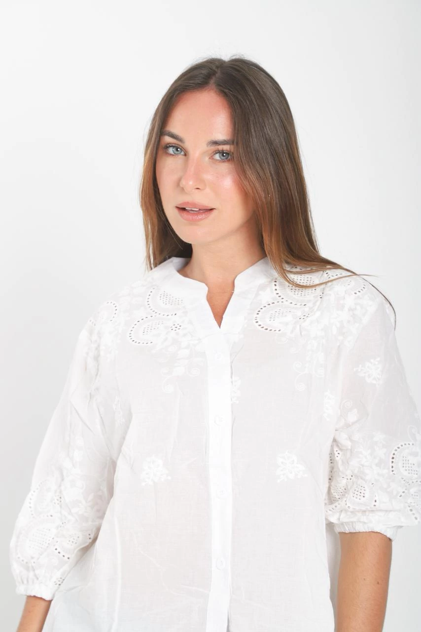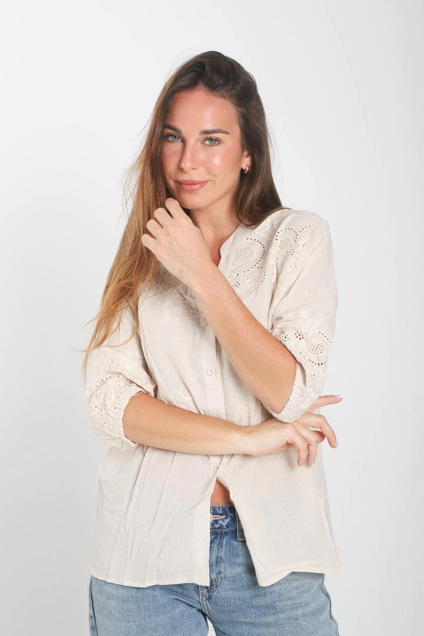 Camisa STERLING lino c/bordado y lentejuelas (ru5177)