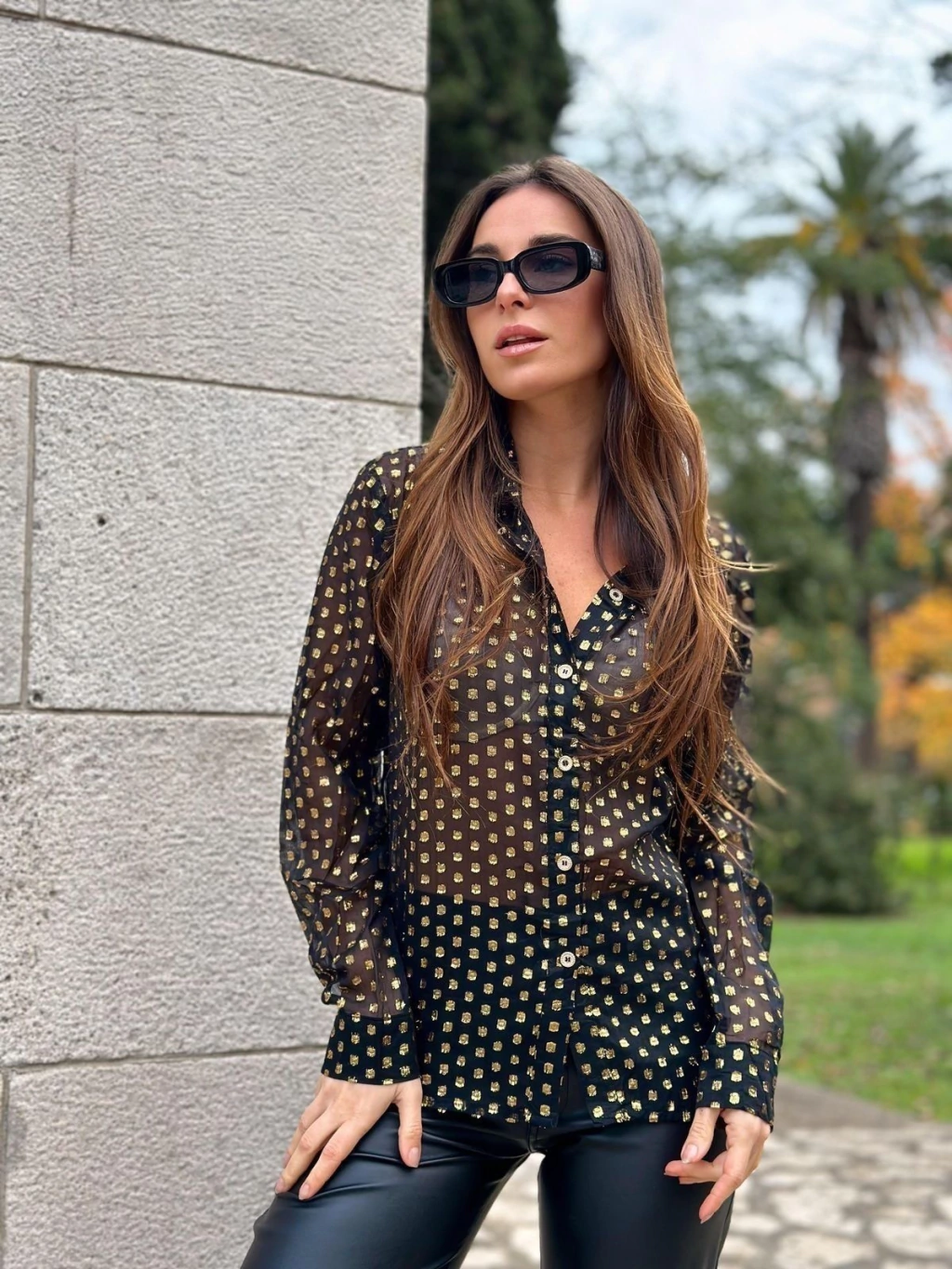 Camisa Premium de Gasa con Estampa Lunares. Medidas Aproximadas: Talle S Sisa 51 cm Largo 61 cm, Talle M Sisa 53 cm Largo 62 cm y Talle L Sisa 55 cm Largo 63 cm.