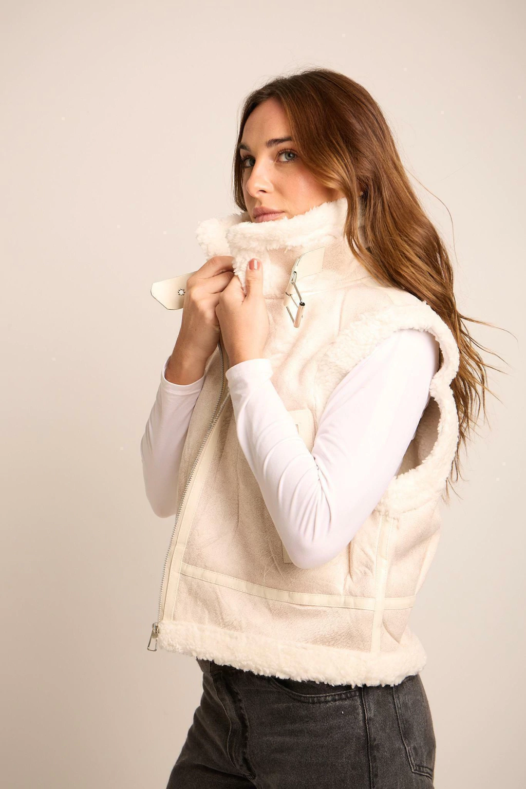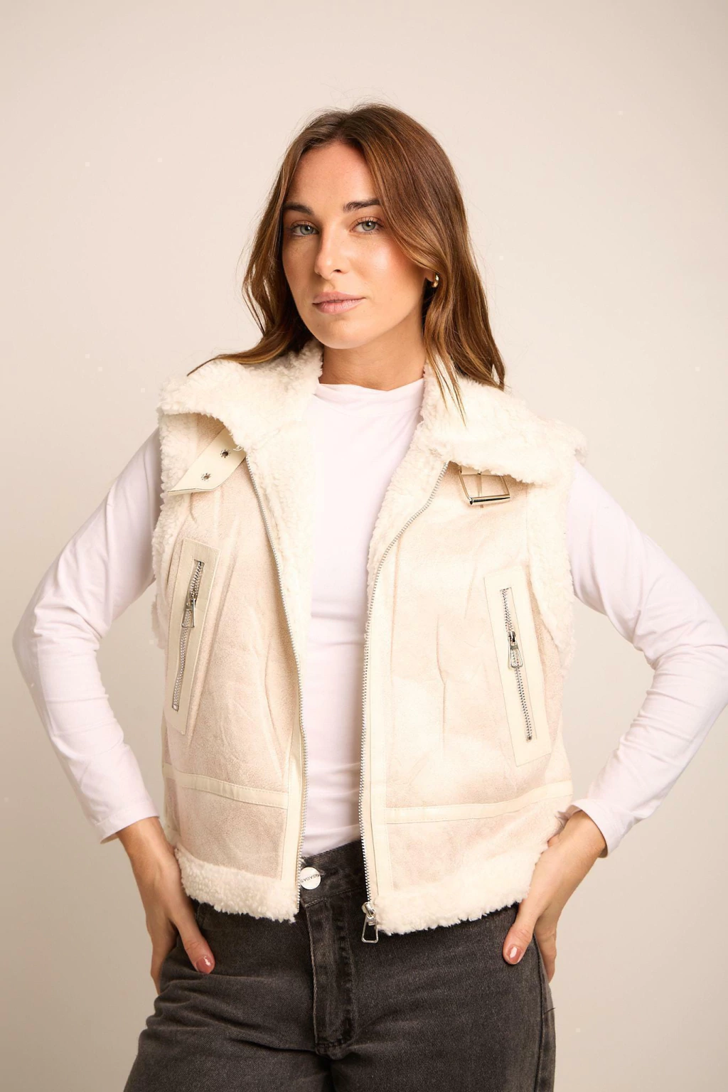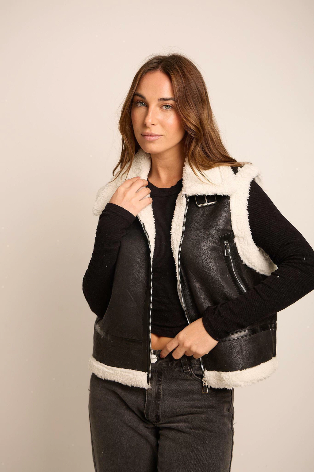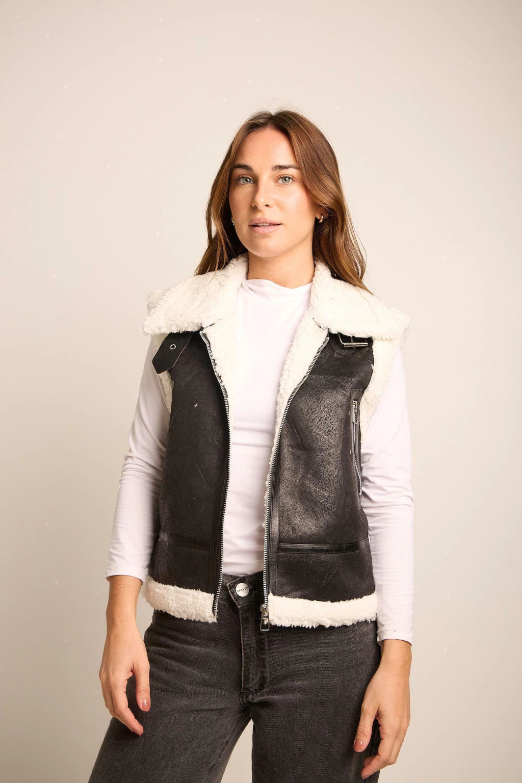 Chaleco Premium con Piel, Bolsillos y Cierre. Medidas Aproximadas: Talle S Sisa 54 cm Largo 51 cm, Talle M Sisa 56 cm Largo 52 cm y Talle L Sisa 58 cm Largo 53 cm.