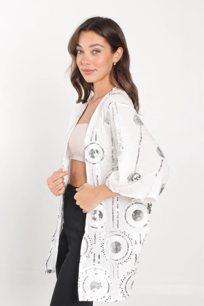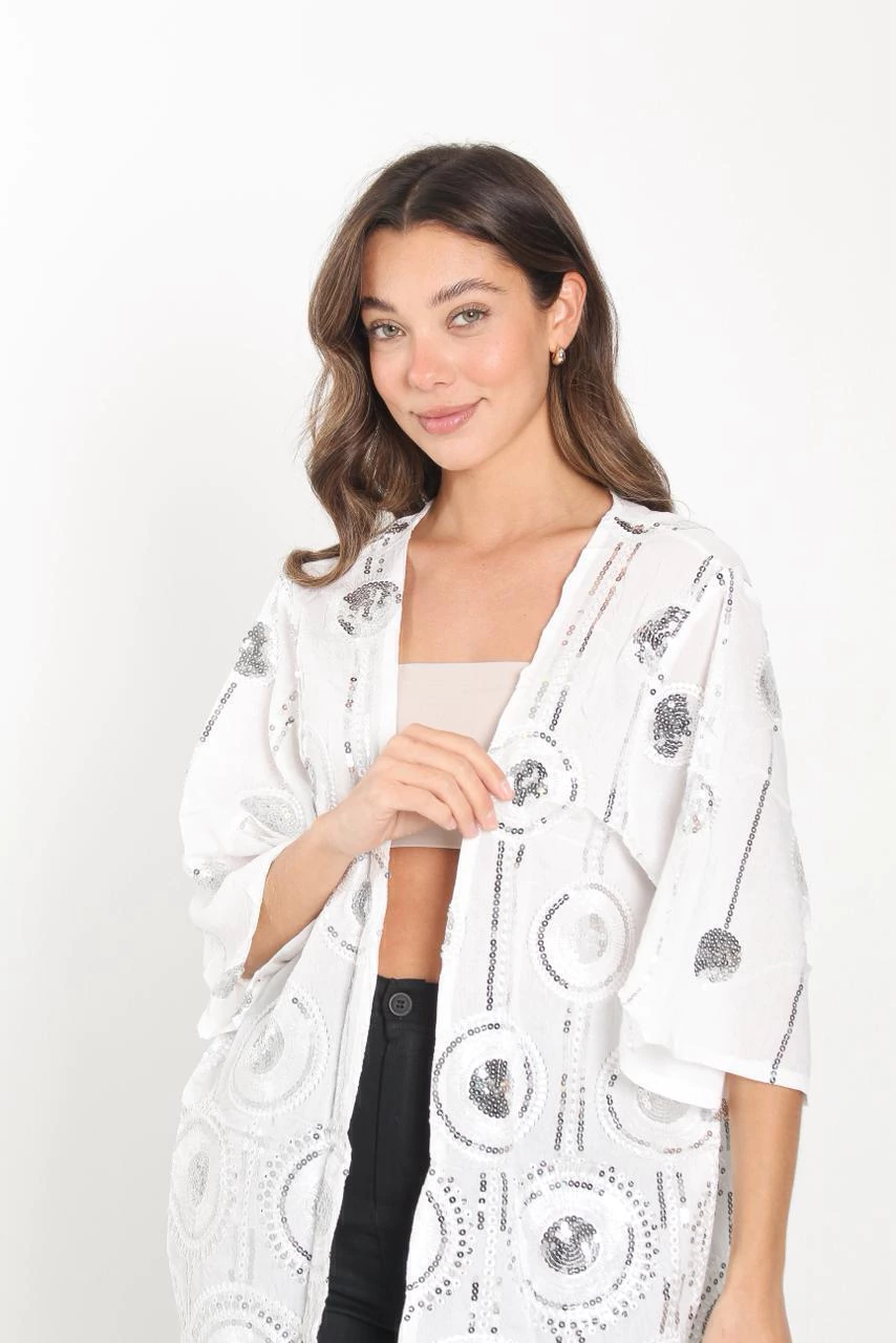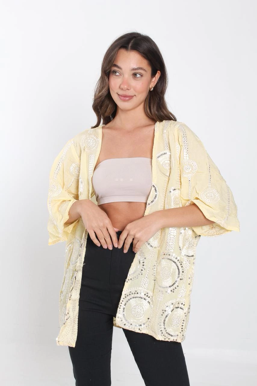 Kimono YAMAM lino bordado c/lentejuelas (ru5174)