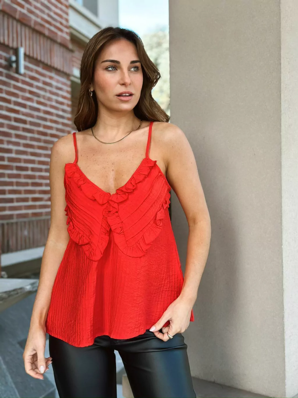 Musculosa Premium con Volados y Bretel Regulable. Medidas Aproximadas: Talle M Sisa 40 cm Largo 58 cm y Talle L Sisa 42 cm Largo 60 cm.