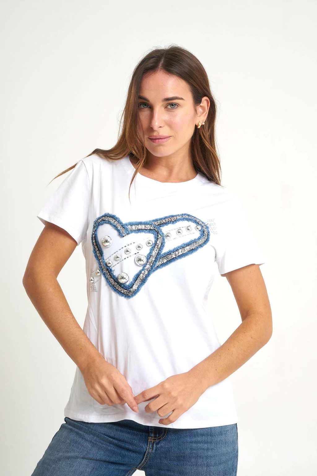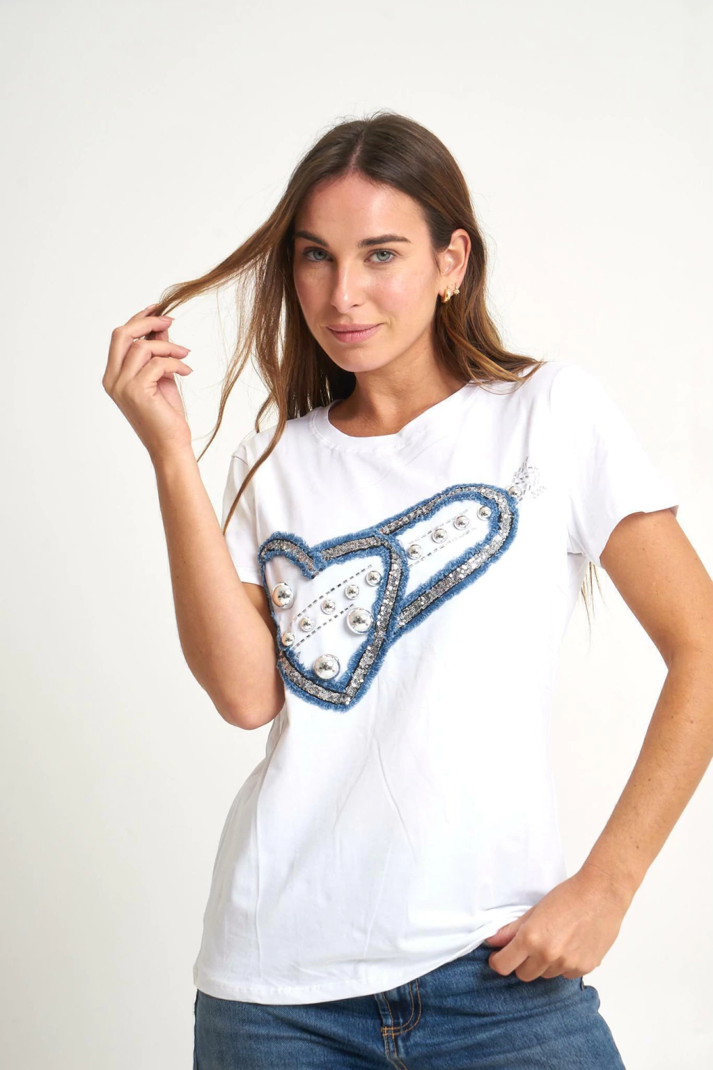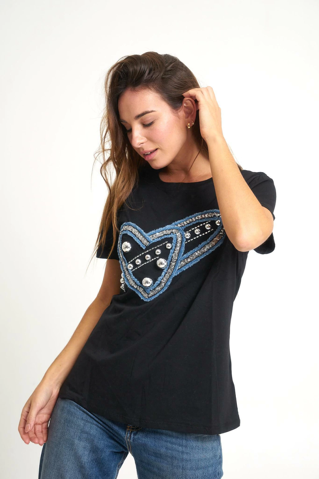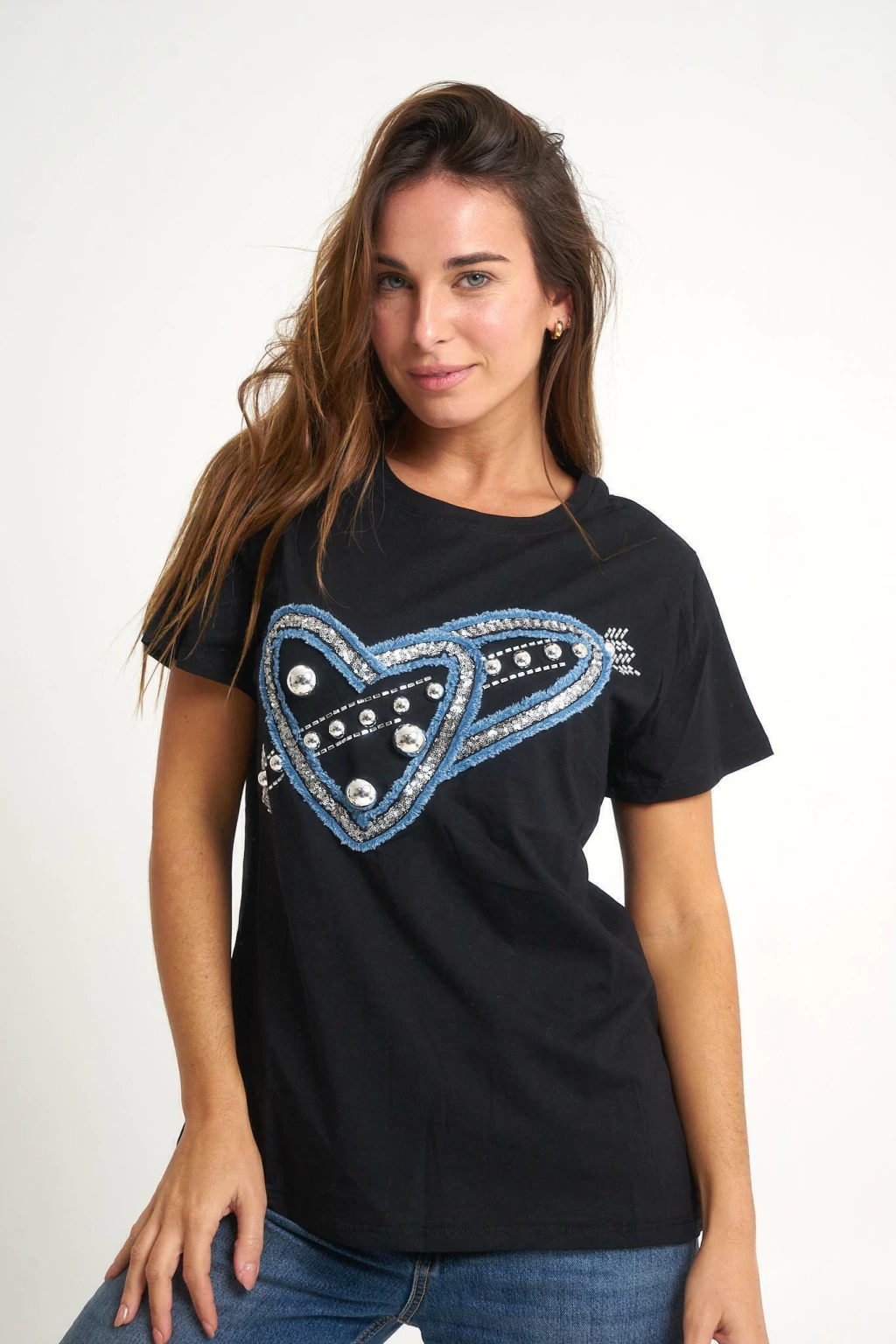Remera Premium con Brillos y Apliques. Medidas Aproximadas: Talle S/M Sisa 45 cm Largo 60 cm y Talle L/XL Sisa 46 cm Largo 61 cm.