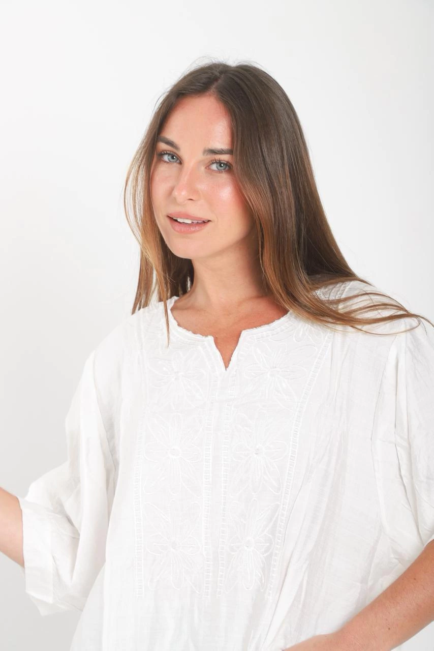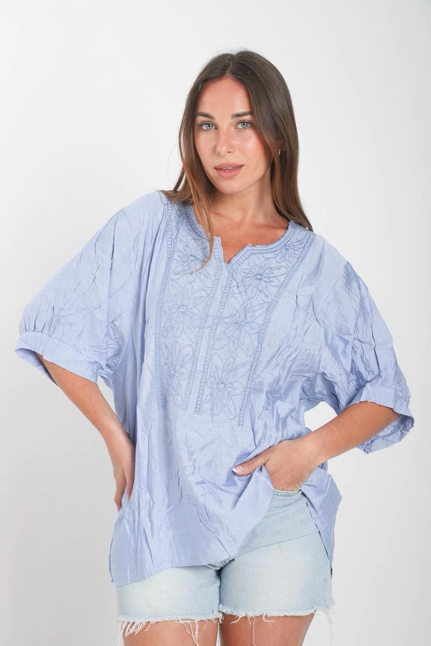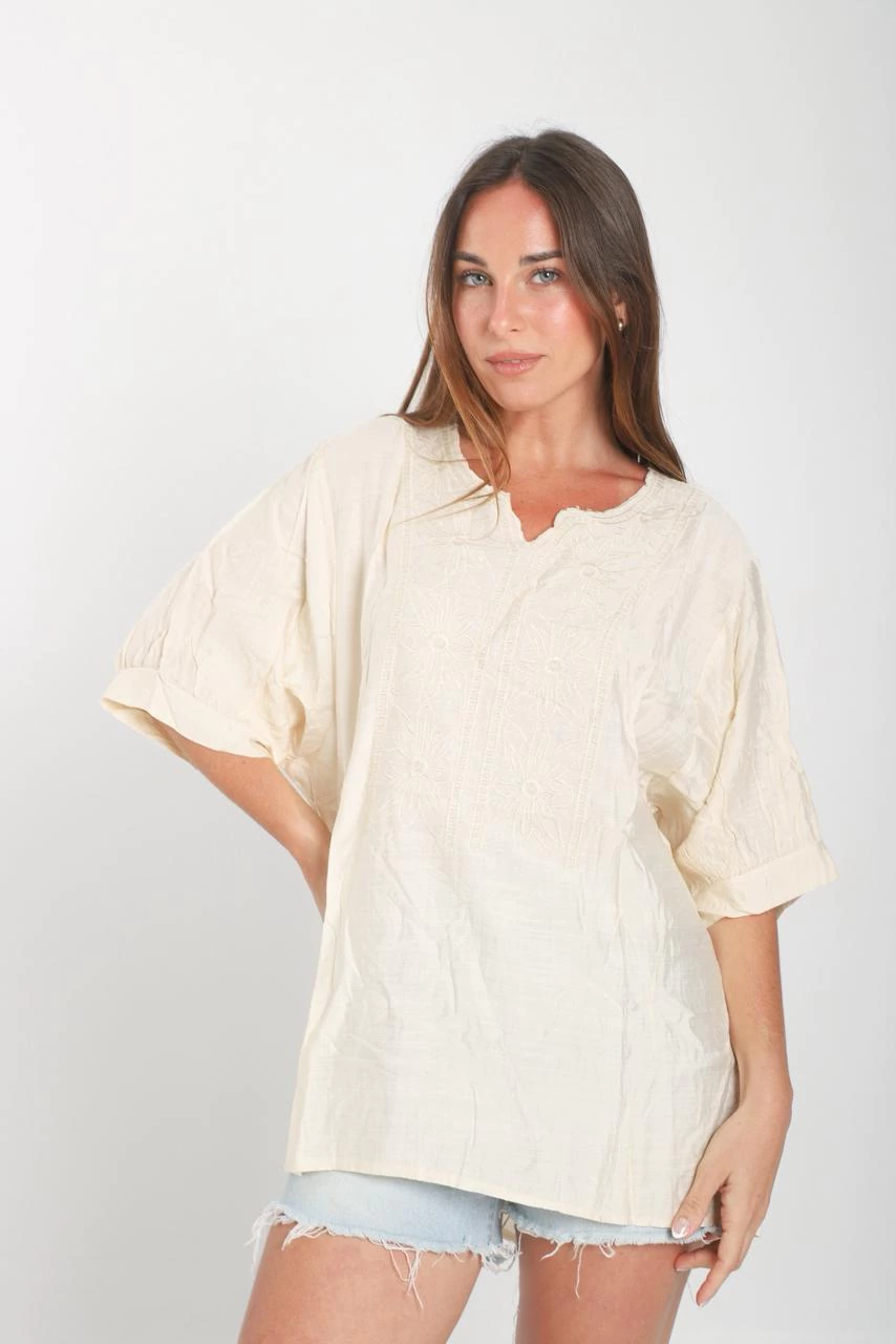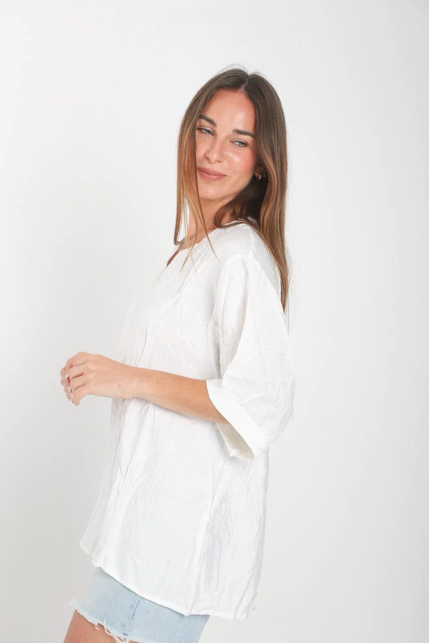 Camisa STERLING lino c/bordado y lentejuelas (ru5177)