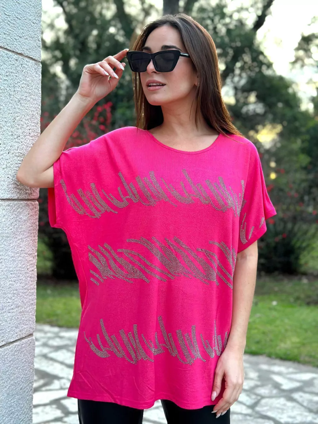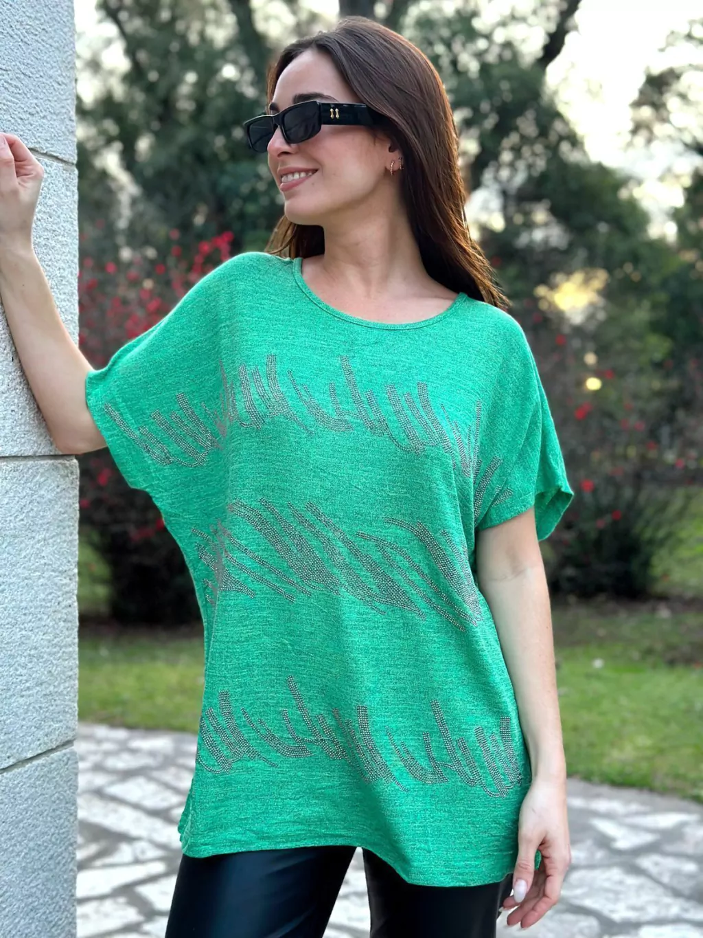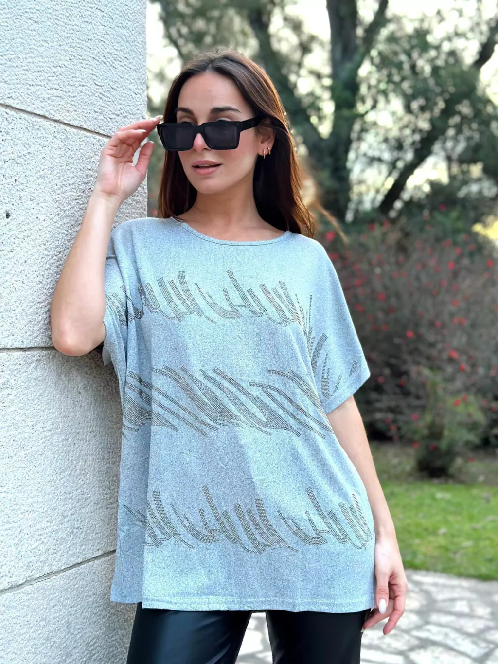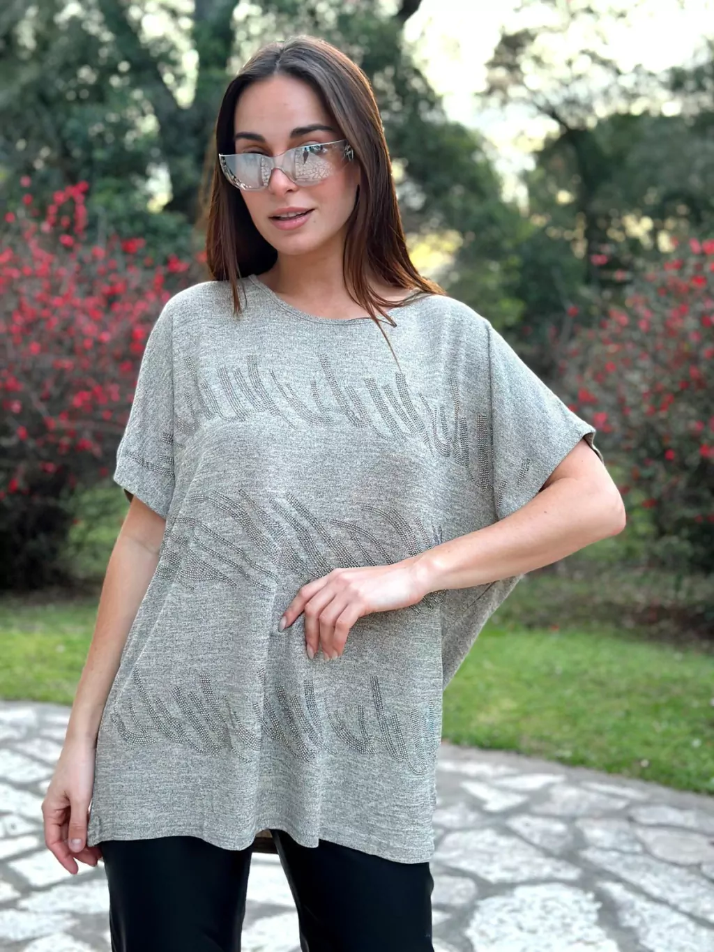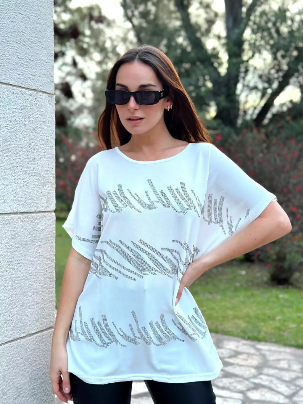 Remeron Premium con Aplique de Strass. Medidas Aproximadas: Talle S/M Sisa 66 cm Largo 70 cm y Talle L/XL Sisa 68 cm Largo 72 cm.
