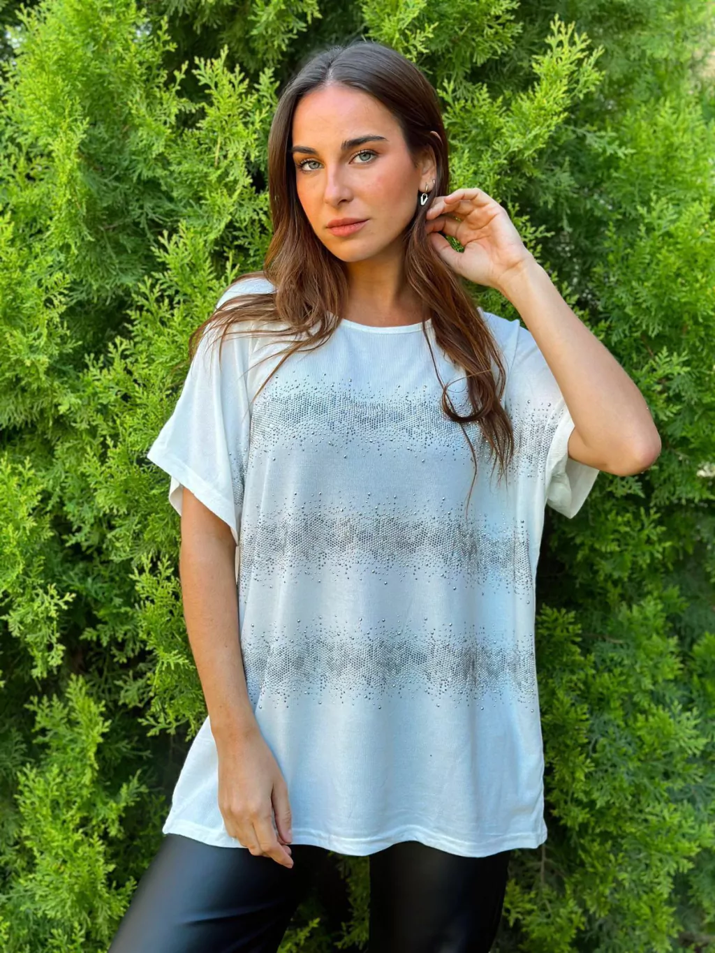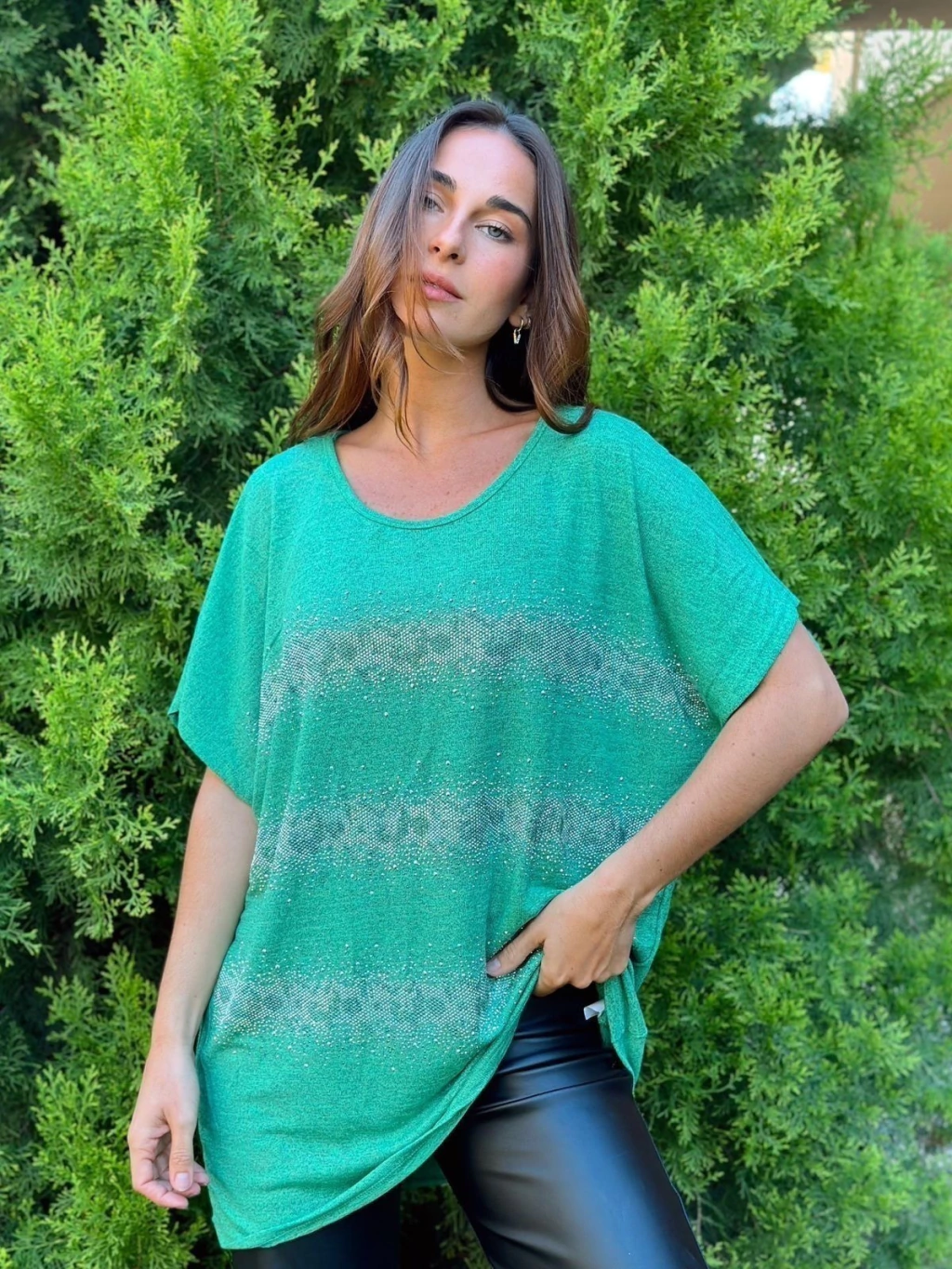 Remeron Premium con aplique Strass. Medidas Aproximadas: Talle S/M Sisa 63 cm Largo 67 cm y Talle L/XL Sisa 65 cm Largo 70 cm.