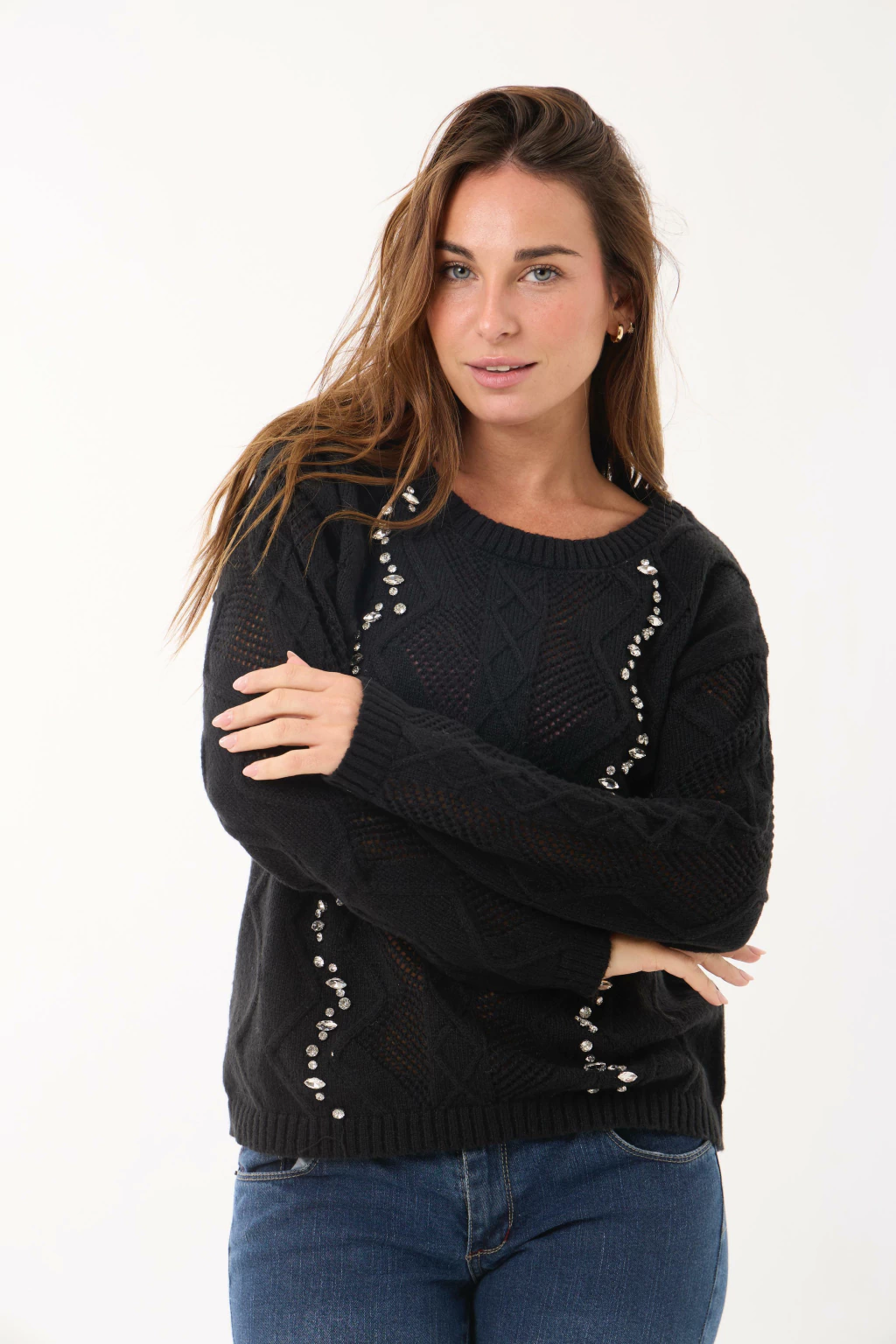 Sweater Premium Tejido con Piedras. Medidas Aproximadas: Talle S/M Sisa 54 cm Largo 59 cm y Talle L/XL Sisa 56 cm Largo 61 cm.