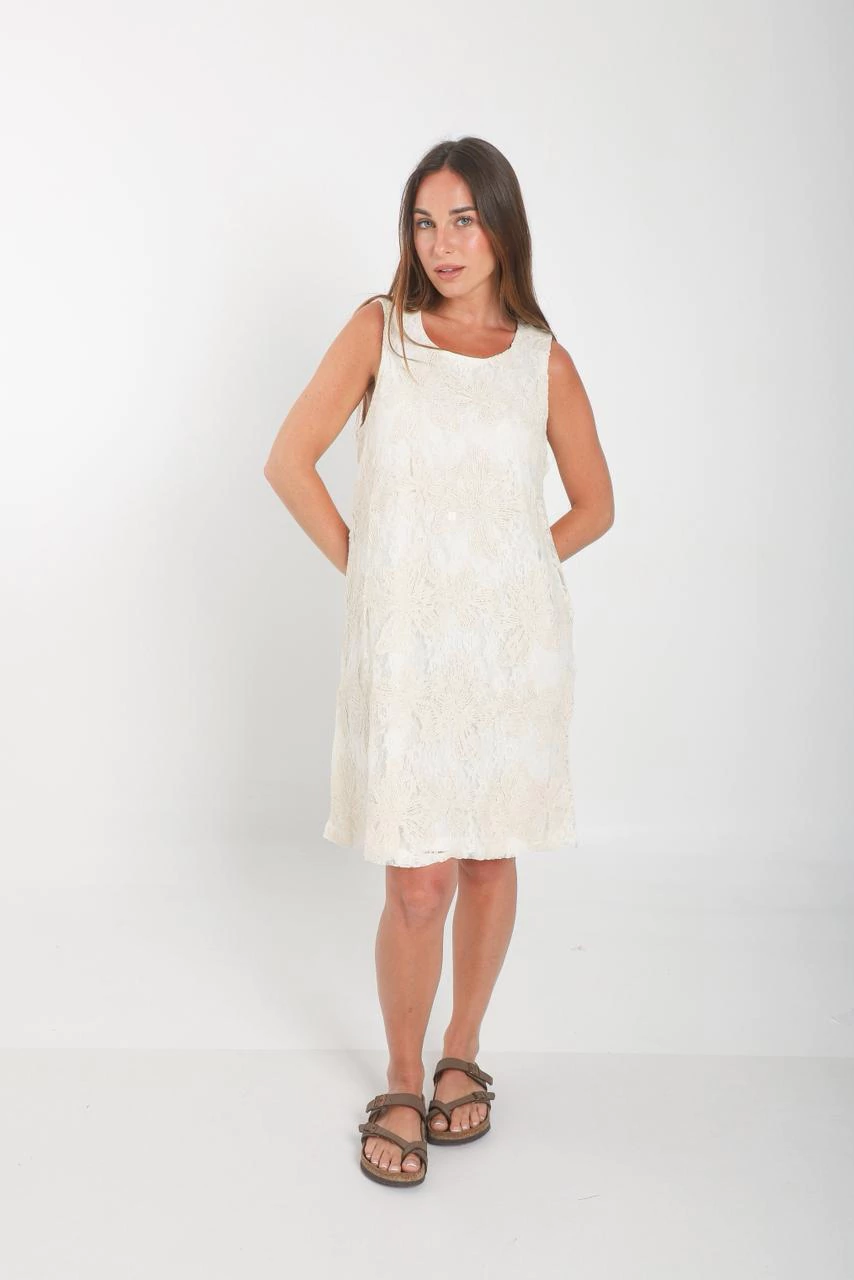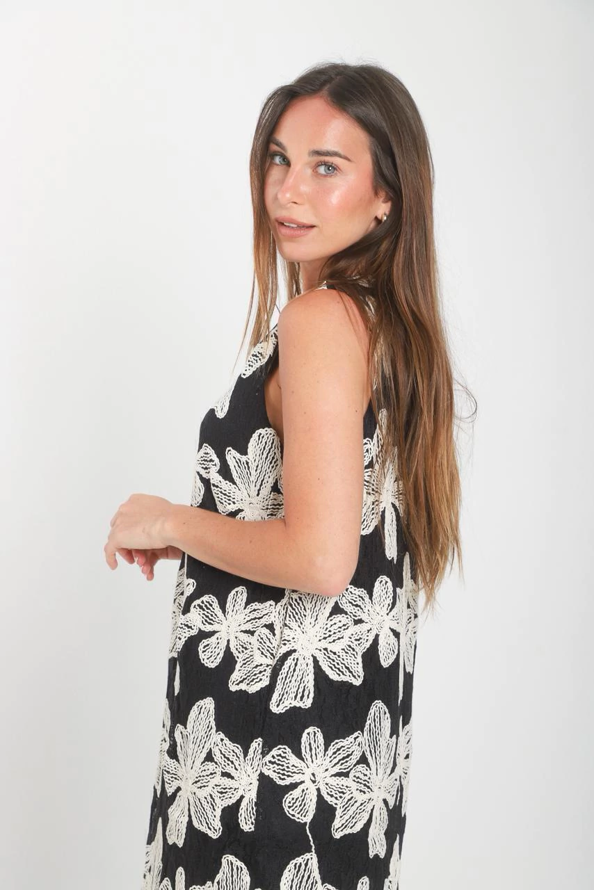 Vestido Premium Forrado de Encaje con Bordado Crochet.